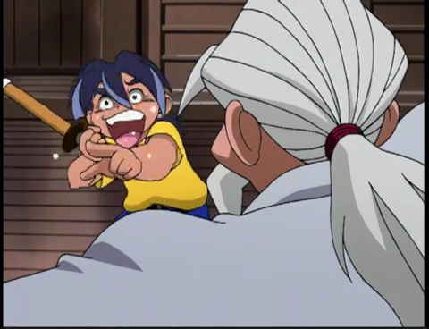 Something I really enjoyed was just how dark this episode felt. As well as Ray’s history, we see some of the in-universe history of beyblading itself. We learn that it came from a weapon called a bey, and the bit beasts were themselves there to help warriors destroy their enemies. As this is explained we’re treated to a surprisingly graphic still of one of Ray’s warrior ancestors standing victoriously over a field of dead soldiers, some of whom have spears poking out of them.