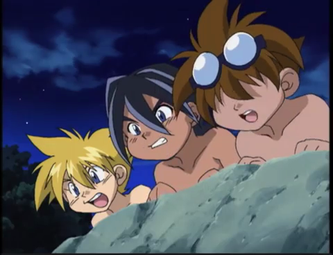 - This episode contains not one but two scenes that were cut out of the Japanese dub: the first is when Max performs his reverse launch – if you look closely you can see that his ripcord has no handle in this scene. The Japanese version shows him chewing it off and spitting it out. I guess they didn’t want kids to copy it and choke. The second scene cut out is towards the end where Tyson, Max and Kenny spot Ray from the hot springs, where there's some brief nudity as the characters are peering over the cliff.