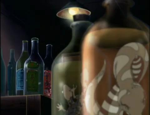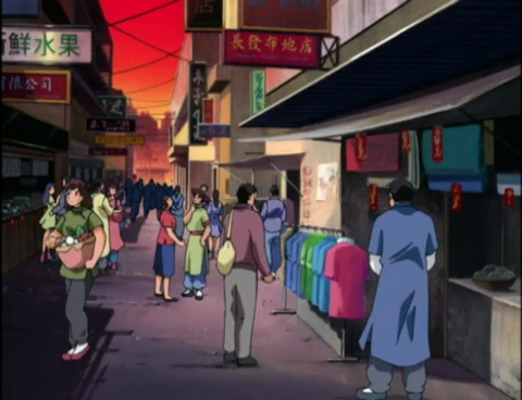 - Many of the scenes of Hong Kong’s streets were censored in this episode; shop signs advertising alcohol were blurred out in the English dub.